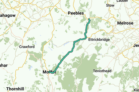 Lorsque vous faites du vélo sur la route C2C écossaise d'Annan au Forth Bridge (voir https://www.sevendaycyclist.com/ultimate-scottish-c2c-guide), plusieurs cyclistes locaux ont suggéré cela comme un itinéraire alternatif de Moffat à Innerleithen. Certes, cela ne passe pas par le Devil's Beef Tub, Tweedale, et Peebles, mais il y a moins de camions de bois, et les locaux ont dit qu'ils pensaient que c'était un itinéraire plus joli.