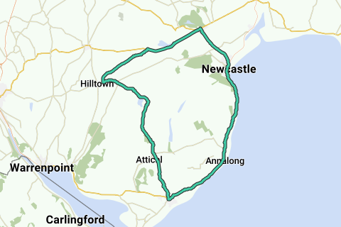 Les Mourne Mountains est une AONB et une chaîne de montagnes située sur la côte au sud de l'Irlande du Nord. Cet itinéraire de course vous emmène à travers le magnifique paysage montagneux. Le parcours commence et se termine à Newcastle. Profitez du calme, du silence et de la beauté de la nature en route !