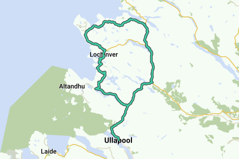Discover all benefitsCette route motarde te mène à travers la nature unique qui caractérise si bien le parc national d'Assynt - Coigach. Les routes y sont très bien praticables et offrent une vue magnifique sur l'environnement désolé avec ses montagnes de formes uniques et ses magnifiques lacs. Il vaut donc vraiment la peine de venir ici ! Le départ et l'arrivée se font à Ullapool.
