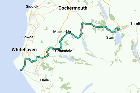 À partir du camping Seacote, vous allez de nouveau vers le nord pour reprendre la route cyclable C2C. La piste cyclable Whitehaven Ennerdale est un peu cachée, alors gardez l'œil ouvert. Ou demandez aux habitants. Sur ce beau chemin cyclable, il y a un moment où vous rencontrez une intersection en Y. Oubliez un moment le tracé GPX et gardez la droite en suivant le panneau NCR 71. Vous resterez ainsi sur ce joli chemin plat traversant un beau paysage. Vous retrouverez la C2C après un moment.