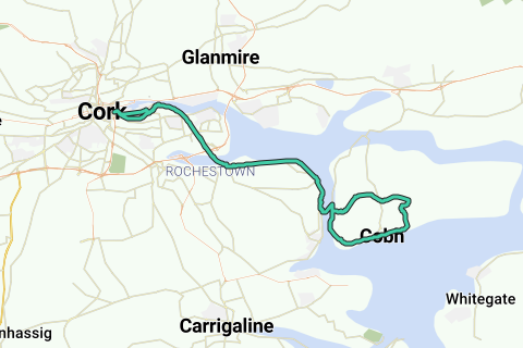 Commencez à Albert Quay et terminez dans le pittoresque village de Cobh, cet itinéraire vous fera longer l'eau. De là, vous pourrez admirer les vues spectaculaires sur le port avant de faire du vélo en direction de Cobh.