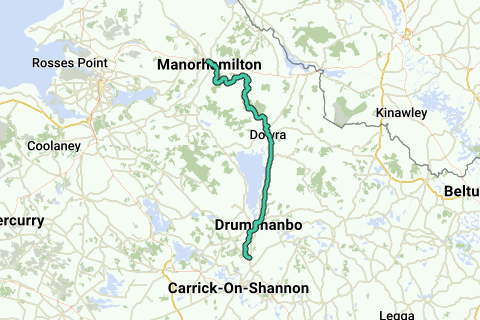 Cet itinéraire commence à Manorhamilton, au cœur des Cinq Glen de Leitrim. De là, vous vous dirigerez vers le sud, grimpant rapidement depuis le fond de la vallée jusqu'au sommet de la chaîne de montagnes de Boleybrack où le lac de montagne éloigné de Doolough marque le point le plus élevé de votre voyage.
