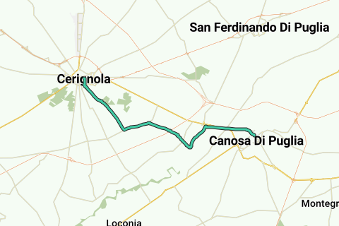 Cette piste fait partie du pèlerinage Le Chemin des Francs, où vous quittez Rome par la Via Appia Antica et terminez à Bari, d'où le bateau part pour le reste du voyage vers Jérusalem.