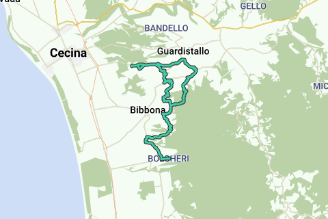 Itinéraire sans voiture magnifique à travers les forêts, les champs de céréales, les oliveraies et les vignobles et les cyprès, avec une vue régulière sur la mer. La Toscane comme vous la connaissez des photos publicitaires. VTT ou (de préférence) E-MTB nécessaire pour le passage en forêt entre Casale et Bibbona. Le passage en forêt est géré par l'administration forestière de l'État. Avec une barrière, mais accessible aux piétons et aux cyclistes. Sans VTT, l'alternative est de faire l'aller-retour par la partie inférieure de l'itinéraire. Magnifique aussi. À part deux tronçons inévitables de 2 km, les routes provinciales plus fréquentées sont évitées. Principalement des itinéraires en gravier ou des chemins agricoles locaux.