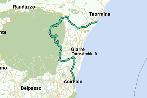 Cette route vous mène du nord-est vers l'Etna. Elle commence au bord de la mer à Giardini Naxos.