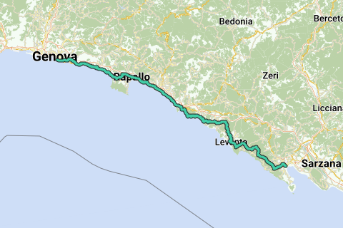 Pelgrimroute pour marcher entre La Spezia et Gênes. Les villes suivantes se trouvent sur la route : La Spezia, Sestri, Rapallo et Gênes.