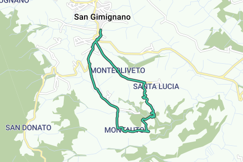 Enchanté de vous rencontrer : San Gimignano. Un arrêt café n'est pas un luxe superflu. Ce sera une tournée difficile. L'itinéraire de marche commence au parking. Les sentiers GR coïncident avec cet itinéraire.