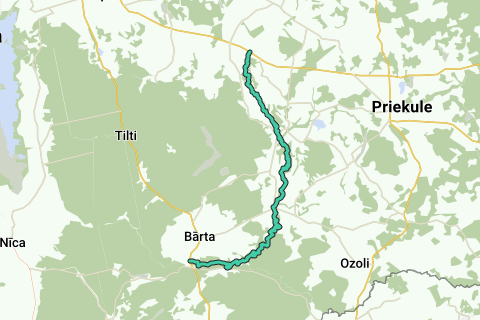 Les 9 derniers km derrière le pont de Mazkaleti jusqu'à l'estuaire de la Vartaja dans la Barta constituent la section la plus populaire et la plus belle de la Vartaja. Les méandres de la rivière reviennent et le lit de la rivière est parsemé de pierres. Il est recommandé de terminer le parcours sur la rivière à Barta, en pagayant 700 m jusqu'à Langeris, où vous pouvez facilement sortir, ou 6,6 km jusqu'au pont de Barta (itinéraire P113).