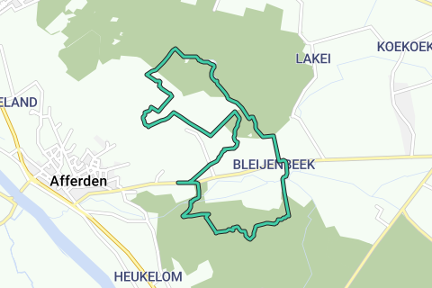 Un itinéraire très varié à travers le parc national de Maasduinen près d'Afferden. Tout d'abord, le parcours passe par une chapelle dans les bois et près du terrain de camping naturel de Cockse Heide. Ensuite, il longe un étang et monte vers les dunes d'Afferdense avec une tour d'observation. Puis à travers les forêts, de nouveau le long d'un étang, vers la ruine de l'ancien château de Blijenbeek et enfin, encore une fois le long d'un étang (De Duvelskuul), retour au point de départ, le café forestier 't Rimpelt. Pas de restauration en cours de route.
