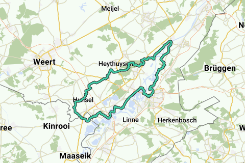 En Belgique, se garer près de l'ancien bureau des douanes à Kessenich, puis traverser immédiatement la frontière avec les Pays-Bas. D'abord, direction le village blanc de Thorn, puis vers Wessem le long de la Meuse. Par Sluis Heel, puis nous arrivons à Roermond, en direction du nord Beesel, nous traversons de nouveau la Meuse vers Kessel. De retour le long de la Meuse mais maintenant vers le sud Hanssum, et Neer, ensuite la réserve naturelle de Leudal, nous passons par le centre de visiteurs à Haelen. Trajet total de 68 km, belle excursion d'une journée.