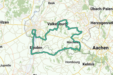 Itinéraire à travers la région des collines avec une excursion vers la vallée de la Meuse. Via Gronsveld le long de la Meuse jusqu'au pont Kennedy à Maastricht. Là, traverser la Meuse et sur le côté ouest de la rivière via St. Pietersberg, Petit-Lanaye, Lanaye et Nivelle jusqu'à Moelingen. Ensuite, un petit morceau à travers la région de Voer et retour à la région des collines.