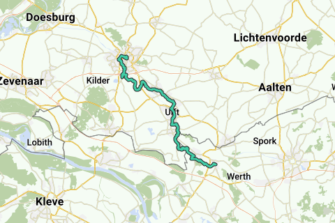 La randonnée d'une journée (que nous recommandons de faire sur deux jours) se déroule à travers l'Achterhoek, le long de l'Oude IJssel, d'Isselburg, en Rhénanie-du-Nord-Westphalie, en Allemagne, jusqu'à Doetinchem. Et cela le long des points de cheminement.