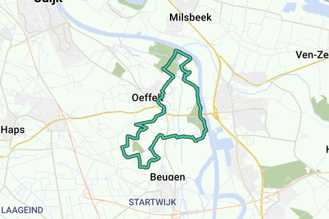 Cette magnifique route longe la Raam d'Oeffelt, à travers le petit Vilt, le cœur du village d'Oeffelt et la zone Natura 2000 d'Oeffelter Meent. Il y a environ 13 000 ans, le Vilt était un ancien bras de la Meuse. Le Vilt est maintenant une zone marécageuse avec un grand étang et un bord de forêt feuillue. Dans la forêt, quelques terriers de blaireaux sont cachés.