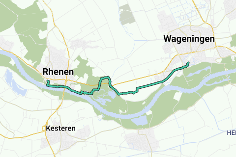 L'itinéraire commence devant l'Ancien Hôtel de Ville de Rhenen et mène ensuite le long du Rhin jusqu'au Grebbeberg. Une montée raide mais courte suit. En haut, il y a de belles vues sur la Betuwe de l'autre côté du fleuve. Ce promenade ne contournent également pas l'héritage de la guerre du Grebbeberg. Après le monument et le cimetière d'honneur, nous descendons et arrivons alors sur le Grebbedijk avec vue sur la 'Chambre Bleue'. Nous marchons le long du port et nous nous retrouvons peu après sur la place du marché de Wageningen.