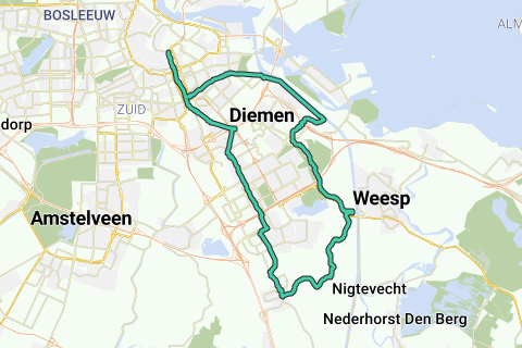 Itinéraire de points de noeud vélo d'Amsterdam au joli village d'Abcoude et retour.