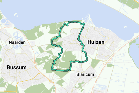 Un itinéraire établi par Paula Versnick et Gerard van Wierst autour de Huizen : Près de 16 kilomètres à travers bois, bruyère, port et village. Particulièrement varié. Idéal pour un après-midi entier avec différentes terrasses et auberges. Des oiseaux, des petits animaux ainsi qu'un troupeau de moutons font également partie des attraits de cette promenade.