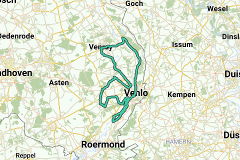 Cet itinéraire commence et se termine à BBBeesel, Chambre d'Hôtes Bio Beesel (chez Yvonne et Leon). En longeant la Meuse, on va de Beesel à Venlo. Ensuite, on continue en direction du nord, toujours près de la Meuse, jusqu'à Knikkerdorp. Par la suite, on emprunte de belles pistes cyclables, avec un tronçon remarquablement beau de la "Greenport Bikeway". À la fin de l'itinéraire, tu traverses la Meuse à la ferry Kessel-Beesel.