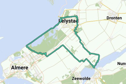 Point de départ et d'arrivée de l'itinéraire : Oostvaardersbosplaats, 1335XL Almere. Difficulté générale de cet itinéraire : 47/100. L'itinéraire passe entre autres par les points d'intérêt suivants : Gasterij De Oostvaarders (randonneurs bienvenus - gastronomie), Gemaal Wortman (station de pompage), Musée national de l'espace, Hoge Knarsluis.