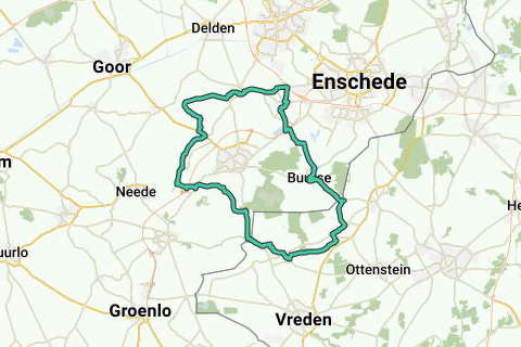 Départ de : Oldenkotseweg, 7157BV Rekken. L'itinéraire passe notamment par les points d'intérêt suivants : Ten Brinke (location de vélos), Rietmolen (village), RK Blasiuskerk (lieu de prière), Boekelo (hôtel), Oldenkotte (pays).