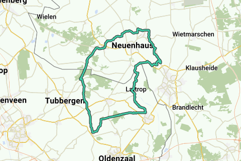 Cette route commence et se termine à : Im Hoppenhook, 49828 Osterwald. Niveau de difficulté général de cette route : 50/100. La route passe par les points d'intérêt suivants : Natuurhuisje 25375 à Osterwald (Comté de Bentheim) (Maison de vacances), Borgelinkmolen (Moulin à vent), Haarle (Commune), Tante Sien (Hôtel), Vakantiewoning-Bij-Grens (Hôtel).