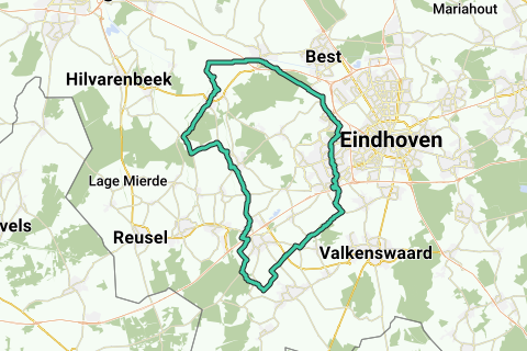 Point de départ et d'arrivée de l'itinéraire : 14 Doornboomstraat, 5091CB Oost West en Middelbeers. L'itinéraire vous fait passer, entre autres, par les points d'intérêt suivants : Restaurant familial De 4 Linden (lieu de restauration), Hôtel de Kroon (hôtel), Hovenring (pont), Camping Ter Spegelt (terrain de camping).