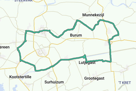 Adresse de départ de l'itinéraire : 30 Stationsstraat, 9843AE Grijpskerk. L'itinéraire passe notamment par les points intéressants suivants : Westerhornermolen, Fogelsangh State (musée), maison de vacances Kollum De Oare Keamer (hôtel), Pieterzijl (quartier).