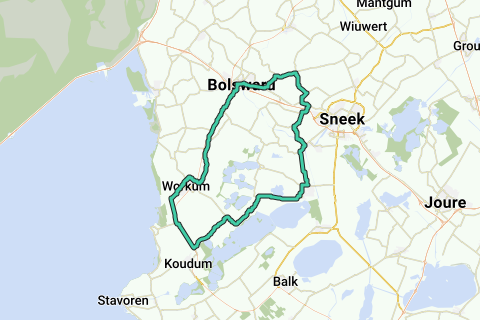 Point de départ et d'arrivée de l'itinéraire : 27 Snekerstraat, 8701XC Bolsward. Difficulté générale de cet itinéraire : 30/100. Belle route de cyclisme sur route variée.