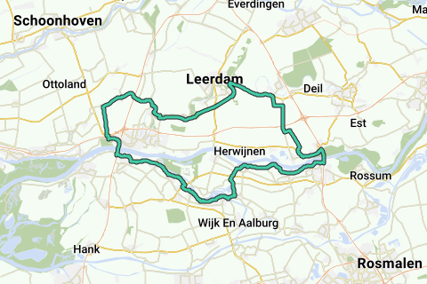 Cette route commence et se termine à : 95 Maasdijk, 5308JC Aalst. Saisissez cette route dans votre GPS et partez.