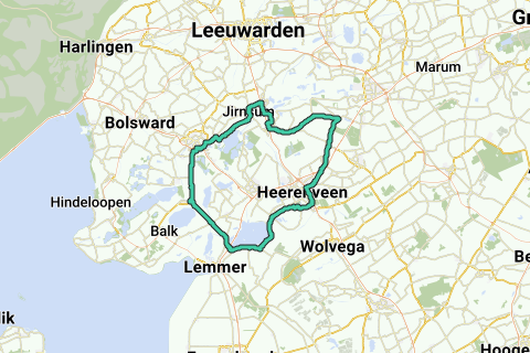 Départ à : 11 Fiifgeawei, 8626GA Offingawier. L'itinéraire passe notamment par les points d'intérêt suivants : Église d'Offingawier (Église), Damshus (Musée), Thialf (Terre), Pont Spannenburg (Pont).