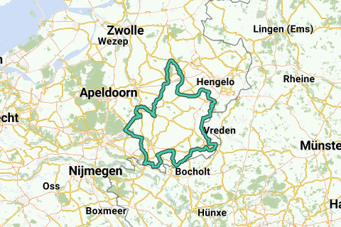 Cette route est balisée dans la région sableuse orientale. Elle traverse en partie la vallée sud de l'IJssel, le paysage de sable recouvert de Twente et l'Acherhoek, ainsi que la zone vallonnée de Salland et Montferland.