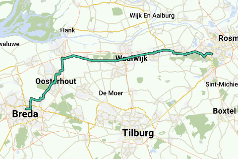 La route commence à l'arrière de la gare NS à 's-Hertogenbosch et se termine à la gare NS de Breda.