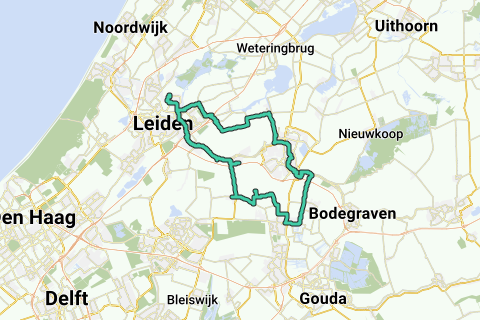 De Leiden à Hazerswoude le long de quelques jolis moulins, à travers Boskoop puis vers Alphen et le long d'Ofwegen pour revenir