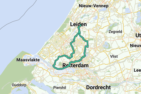 Bel agréable ronde de Leiden aux moulins à vent à R'dam, Schiedam, Maassluis et Maasland. À Rotterdam et Schiedam, l'itinéraire traverse la ville ; mais plus loin, il suit autant que possible des chemins ruraux, qu'il reste encore en quantité suffisante entre Schipluiden et Zoetermeer ; heureusement !