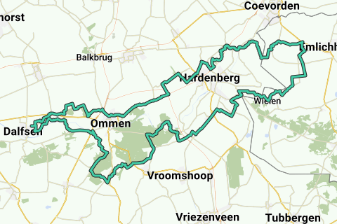 130 km Route : adaptée aux cyclistes entraînés. Après l'Archemer et le Lemelerberg, Marienberg pour le premier arrêt. Ensuite, rapide à travers la frontière et sur le côté allemand, agréable et sinueux le long de la 'Vechte' jusqu'à Gramsbergen pour le deuxième arrêt. Ensuite, cette route continue le long de la Vecht et rejoint à nouveau les autres itinéraires.