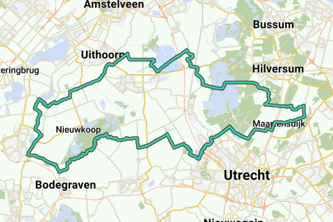 Une route à travers les lacs de Langeraarse, Vinkeveense et Loosdrechtse. Vous passerez également près du château de de Haar et longerez la Meije. Vous longerez également la Meije et en chemin entre la Meije et Mijzeide, vous traverserez la Grecht en ferry. Lors du "contournement de Maartensdijk, Lage Vuuursche et Hollandsche Rading", vous traverserez les forêts.