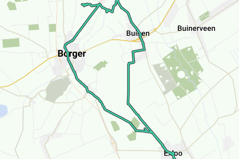 Cette balade à vélo verte te mène à travers des forêts ombragées et passe devant d'impressionnants dolmens : les joyaux historiques du paysage drenther. Tu pédales à travers la verdure de la Boswachterij Exloo, où le paysage vallonné alterne entre forêts de conifères et feuillus, landes ouvertes et dunes de sable. La forêt est parsemée de traces d'un lointain passé. À côté des dolmens, tu y trouveras aussi une ancienne pierre frontière et un cratère recouvert de végétation, issu de l'ère glaciaire. À Borger se trouve le Hunebedcentrum Borger, où tu peux tout apprendre sur les périodes glaciaires, la préhistoire et les œuvres humaines uniques qui ont survécu de cette époque : les imposants et mystérieux dolmens, fabriqués à partir de gigantesques pierres.