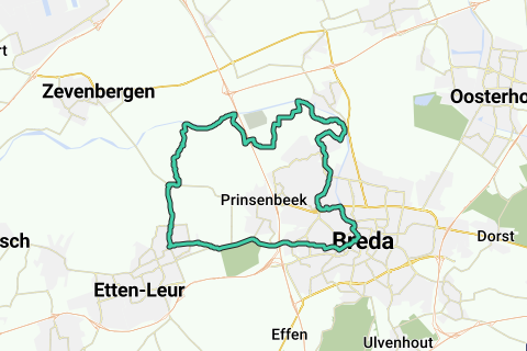 Ce parcours de 35 kilomètres commence à Etten-Leur et longe le Liesbos jusqu'au centre de Breda.