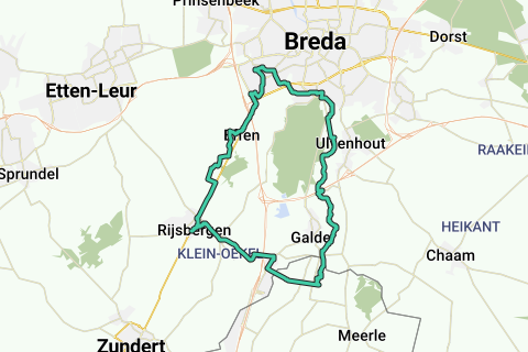 La route cyclable commence et se termine au café het Roode Hert à Princenhage.