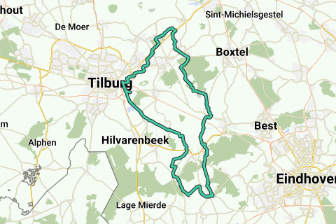 Depuis Vessem, tu te diriges vers le Wilhelminakanaal à travers les Kempen : forêts et prairies se succèdent dans un paysage vaste. À partir d'Haghorst, tu roules le long du Wilhelminakanaal, principalement sur une piste cyclable asfaltée. Tu fais un bref détour vers la brasserie La Trappe. Juste avant Tilburg, tu prends des routes secondaires en direction de Biezenmortel et passes par la réserve naturelle Leemkuilen. Ensuite, tu conturnes le domaine de Haarendael pour rejoindre Haaren. Par la suite, tu roules aux abords de Helvoirt vers le château de Nemerlaer. À hauteur du château, tu as 2 km de piste cyclable non pavée (mais bien praticable), suivi de 1,5 km de piste cyclable étroite asphaltée le long d'un sentier sableux.