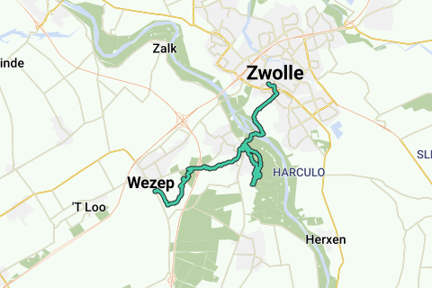 De Zwolle à travers le canal d'Apeldoorn et le Veen général vers Hattem et ensuite à travers Molecate et la plaine de Wezepse vers Wezep. Longue distance à travers la plaine de Wezepse 19,6 km. Courte distance à travers la plaine de Wezepse 18,4 km.