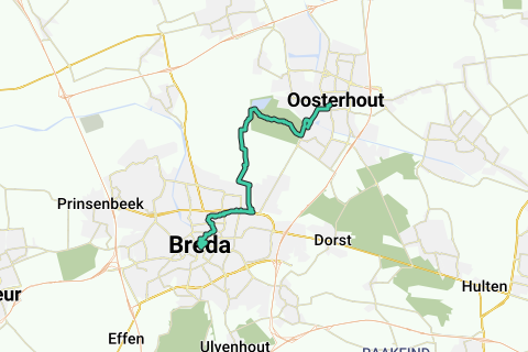 Connexion la plus rapide avec les transports en commun entre le point de départ et le point d'arrivée : À pied de De Heuvel à l'arrêt de bus Oosterhout, puis bus 325, 326 ou 327 jusqu'à la gare de Breda.