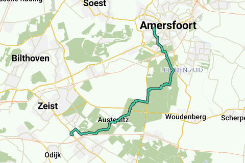 De la gare NS d'Amersfoort, à travers Den Treek et le long de la pyramide d'Austerlitz, à travers le Heuvelrug d'Utrecht jusqu'à la gare NS de Driebergen-Zeist.
