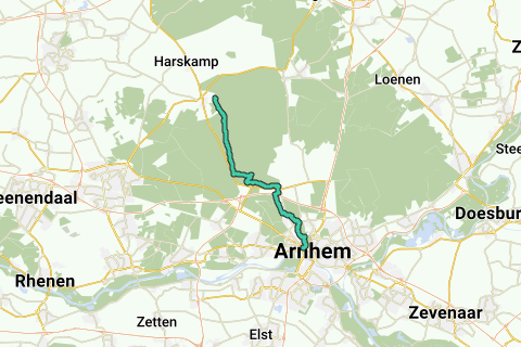 Basé sur l'étape 13 du Veluwe Zwerfpad, cet itinéraire commence à la gare centrale d'Arnhem, traverse le parc Sonsbeek et débouche à Schaarsbergen pour atteindre le Hoge Veluwe. La randonnée se poursuit à travers le parc national Hoge Veluwe jusqu'à Otterlo. Remarque : il y a des frais d'entrée d'environ 10 euros par personne pour la partie du Hoge Veluwe.