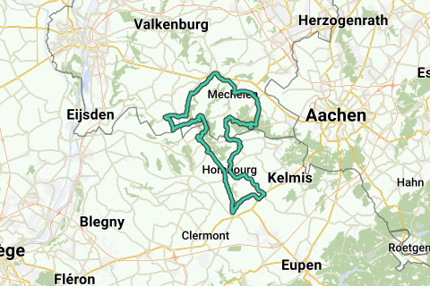 Sortie d'entraînement avec départ/arrivée à l'église de Vijlen. Montées : Oude Akerweg Partij 400 m., max. 10,0 %. Hoogcruts Slenaken 800 m., max. 10,6 %. Schey Noorbeek 2.100 m., max. 8,0 %. Loorberg Slenaken 1.600 m., max. 7 %. Gulpen Houmbourg/Henri-Chapelle (B) 4.400 m., max. 4,0 %. Rue de Hombourg Montzen (B) 2.100 m., max. 7,0 %. Camerig ouest Vijlen 2.900 m., max. 8,0 %. Différence d'altitude : 787.