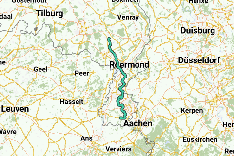 Depuis Grathem vers Maasbracht, en partie par des chemins intérieurs. Depuis Maasbracht, vous pédalez en direction de Montfort vers l'abbaye de Lilbosch. Ensuite, vous traversez la crête à l'ouest de Koningsbosch et plongez en Allemagne par des routes économiques.