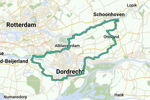Sortie club TC De Hoekse Renners. Départ/arrivée au club-house, Sportlaan 6, Puttershoek. À travers le Kiltunnel et le pont de Sliedrecht, en direction de l'Alblasserwaard. En passant notamment par Ottoland, Achterland et Graafland jusqu'à Nieuwpoort pour la pause café. Ensuite, le long du Lekdijk jusqu'à Nieuw-Lekkerland et Alblasserdam. Via le pont Alblasserdamse et le tunnel Heinenoord retour à Puttershoek. Pause café : café-restaurant De Dam Nieuwpoort.