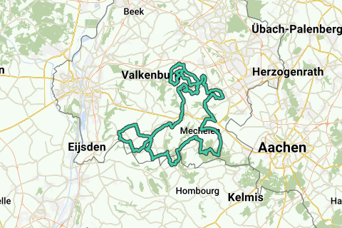 Tour circulaire Heuvelland 24 de Slenaken. Départ/Arrivée : grand parking au pied du Loorberg Slenaken. Montées : Grensweg Slenaken 400 m., max. 10,0%. Gieveld Teuven (B) 1.500 m., max. 6,0%. Hurpersch Mechelen 700 m., max. 7,0%. Camerig ouest Vijlen 4.600 m., max. 8,0%. Kreuzberg sud-est Nijswiller 1.000 m., max. 12,0%. Trintelenberg Eys 2.100 m., max. 7,0%. Klingeleberg (partiellement) Simpelveld 1.000 m., max. 10,0%. Korenweg Colmont 300 m., max. 11,0%. Hooggats Winthagen 1.200 m., max. 8,0%. Holleweg Schin op Geul 600 m., max. 9,0%. Achtbundersweg Ransdaal 1.700 m., max. 8,0%. Bronkweg Elkenrade 800 m., max. 10,0%. Fromberg Voerendaal 1.600 m., max. 8,0%. Alte Luikerweg Reijmerstok 2.400 m., max. 5,0%. Rondelenstraat Mheer 1.200 m., max. 8,0%. Stallestraat Mheer 750 m., max. 9,0%. Bergenhuizen Noorbeek 600 m., max. 10,0%. Schey Noorbeek 1.900 m., max. 8,0%. Différence d'altitude : 1.285. Pause café : Brasserie de kleine König, Kerkplein 9, Schin op Geul (1er avril - 30 septembre fermé le mardi).