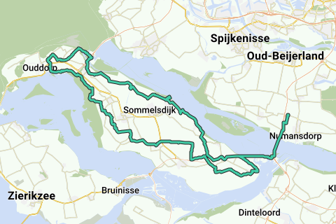Sortie club TC De Hoekse Renners. Départ/fin au parking de covoiturage à l'angle N-487/Volgerlandseweg près d'Intratuin Numansdorp. Via le pont Haringvliet et la place/digue Hellegats vers Goeree-Overflakkee pour un tour de l'île par des routes tranquilles. Retour par la digue/platz Hellegats et le pont Haringvliet vers la Hoekse Waard. Pause café au café 't Sas à Goedereede.