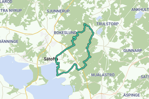 Tour à vélo à partir du camping Jägersbo à travers les forêts de la réserve naturelle de Fulltofta. La majeure partie se fait sur des chemins non pavés et des chemins forestiers. Quelques sections sont pavées mais peu fréquentées par les voitures. Peut également être parcourue avec un vélo de ville classique : il y a juste un petit passage difficile qui peut aussi se faire à pied et environ 1 km de chemin de gazon accidenté.