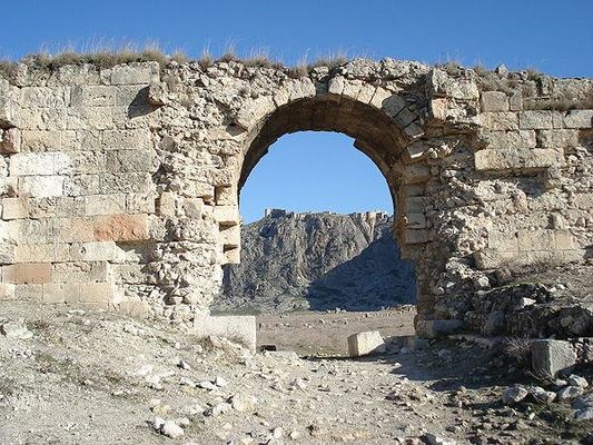 Anazarbe est une ancienne ville et forteresse de Cilicie, sur le fleuve Pyrame, aujourd'hui en Turquie. Nommée aussi Caesarea ad Anazarbus par les Romains,